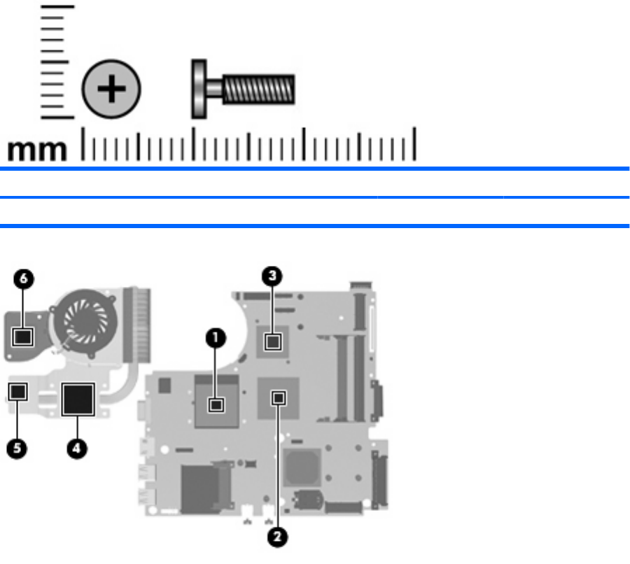 Where used: 7 screws that secure the heat sink to the system board for computers with discrete memory
