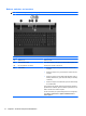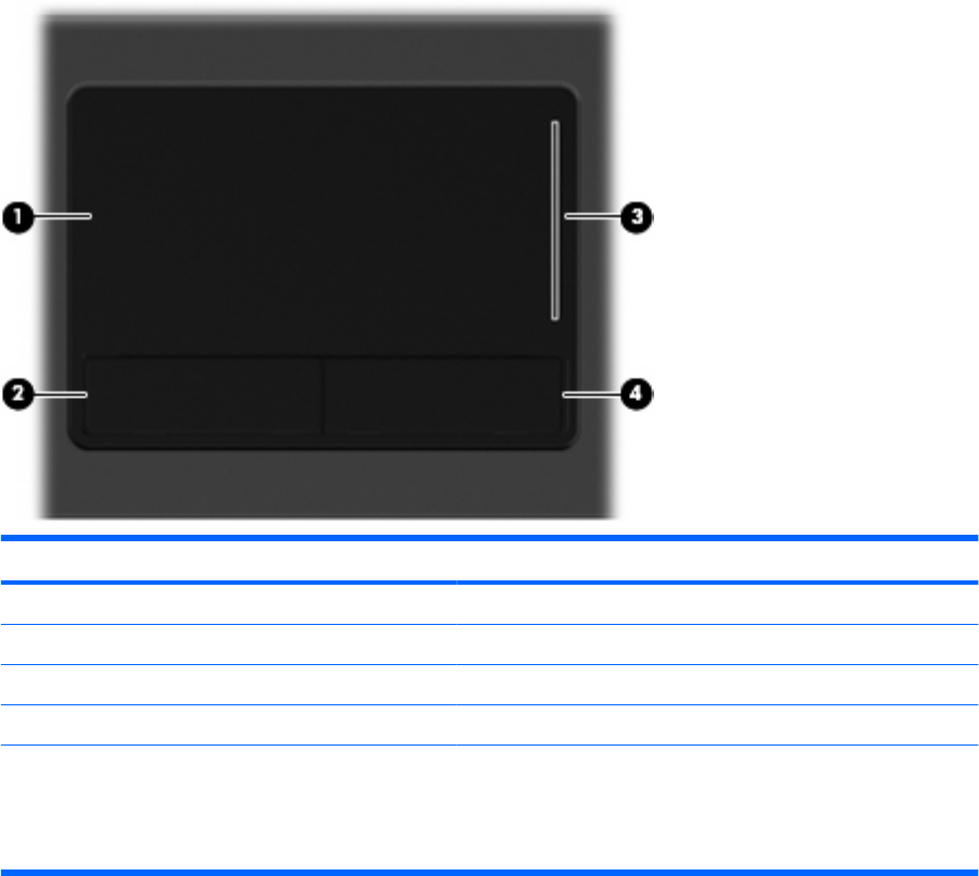 (1) TouchPad* Moves the pointer and selects or activates items on the screen.