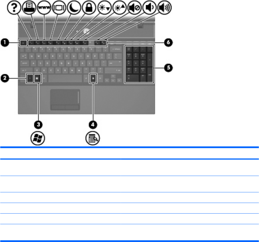 (4) Windows applications key Displays a shortcut menu for items beneath the pointer.