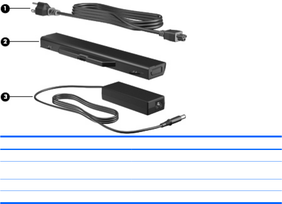 (1) Power cord* Connects an AC adapter to an AC outlet.