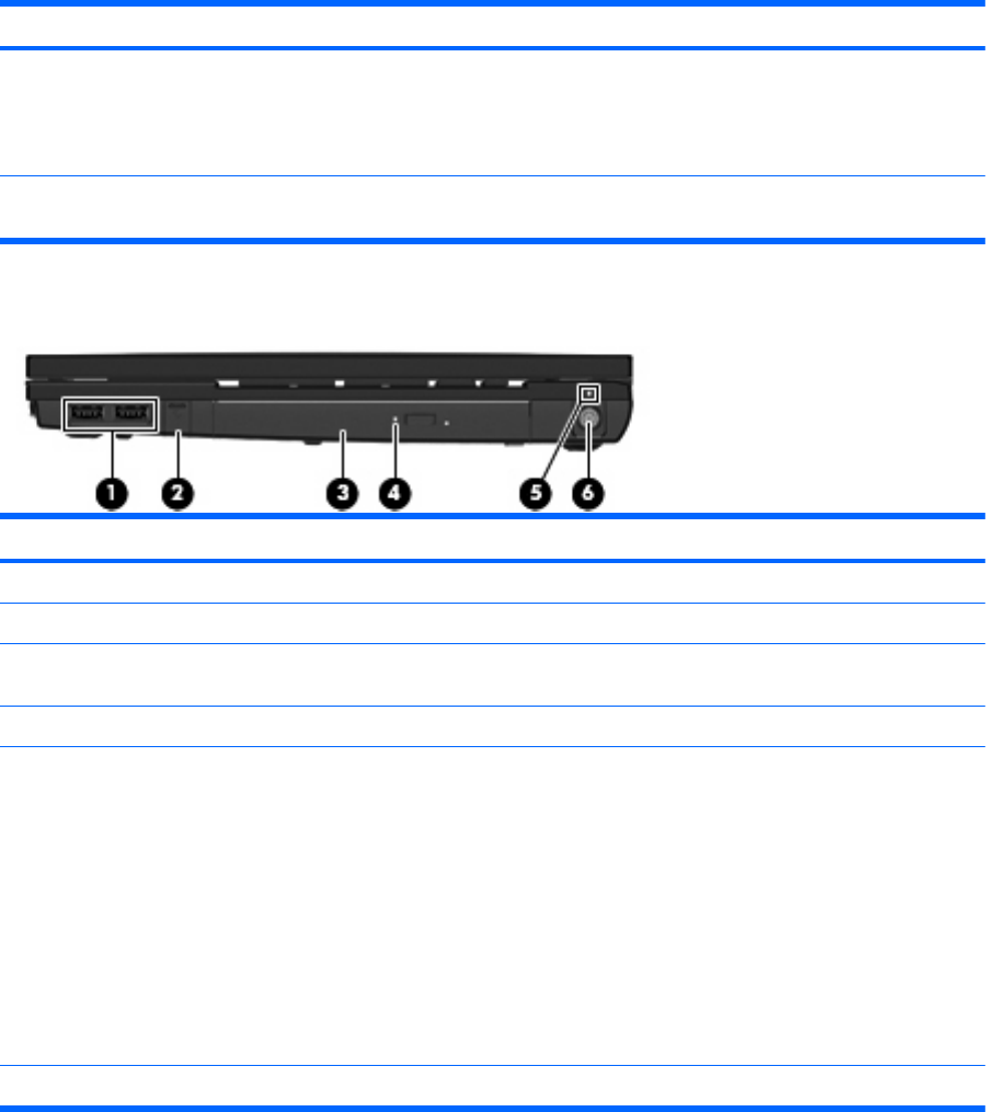 (4) Optical drive light (select models only) Blinking: The optical drive is being accessed.