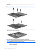 8. Turn the computer display-side up, and then remove the 2 screws from the back edge of the computer. 9. Open the computer as far as possible. 10. Slide the switch cover straight back towards the display, and then remove the switch cover.