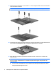 8. Drehen Sie den Computer mit dem Display nach oben, und entfernen Sie die beiden Schrauben von der Rückseite des Computers. 9. Öffnen Sie den Computer so weit wie möglich. 10. Schieben Sie die Abdeckung oberhalb der Tastatur nach hinten in Richtung Display, und entfernen Sie die Abdeckung.