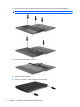 - 1 Dodavanje ili zamjena memorijskih modula Računalo ima jedno mjesto za memorijski modul koje se nalazi ispod tipkovnice. Memorijski kapacitet računala može se nadograditi dodavanjem memorijskog modula u prazni utor za dodatni memorijski modul ili nadogradnjom postojećega memorijskog modula u utoru za primarni memorijski modul. UPOZORENJE! Da biste smanjili opasnost od električnog udara i oštećenja opreme, isključite kabel za napajanje i izvadite sve baterije prije ugradnje memorijskog modula.