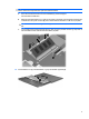 - 1 Tilføjelse eller udskiftning af hukommelsesmoduler Computeren har ét hukommelsesmodulrum, der findes under tastaturet. Computerens hukommelseskapacitet kan opgraderes ved at føje et hukommelsesmodul til den ledige hukommelsesmoduludvidelsesslot eller ved at opgradere det eksisterende hukommelsesmodul i slotten til det primære hukommelsesmodul.