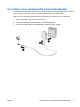 - Tilslutning af et modemkabel ADVARSEL! For at mindske risikoen for elektrisk stød, brand eller beskadigelse af udstyret skal du undlade at tilslutte et modem- eller telefonkabel til RJ-45-stikket (netværksstik). Sådan tilslutter du et modemkabel: 2 1. Sæt modemkablet i computerens modemstik (1). 2. Sæt modemkablet i RJ-11-telefonstikket i væggen (2).