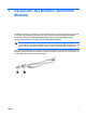 - Anschließen eines landes-/regionenspezifischen Modemkabeladapters Die Telefonbuchsen sind je nach Land/Region unterschiedlich. Um das Modem und das Modemkabel außerhalb des Landes/der Region, in dem Sie den Computer gekauft haben, verwenden zu können, müssen Sie einen landes-/regionenspezifischen Modemkabeladapter kaufen. So schließen Sie das Modem an eine analoge Telefonleitung an, für die keine RJ-11-Telefonbuchse verfügbar ist: DEWW 1. Stecken Sie das Modemkabel in die Modembuchse (1) am Computer. 2.