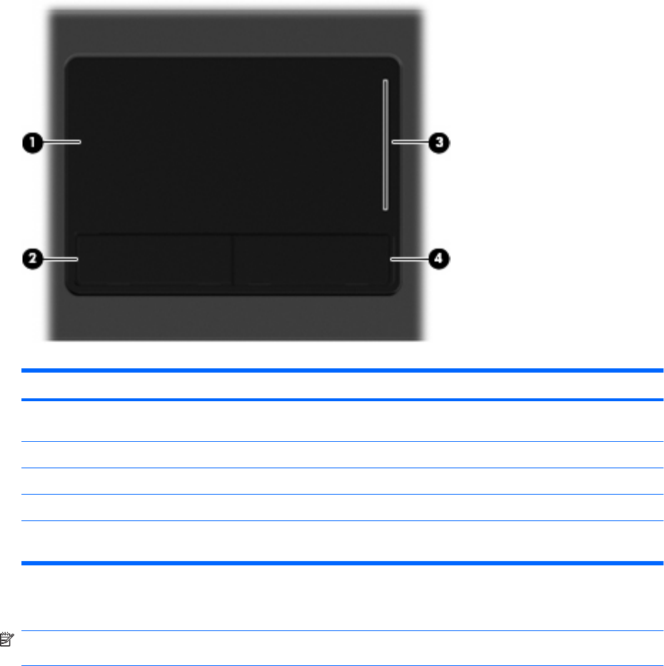 (3) TouchPad-Bildlauffeld Ermöglicht den Bildlauf nach oben oder unten.