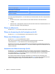Die folgenden Videoübertragungstypen werden von der Tastenkombination fn+f4 unterstützt (in der Klammer finden Sie Beispiele für Geräte, die diese Typen verwenden): ● LCD (Computerdisplay) ● Externes VGA (die meisten externen Monitore) ● HDMI (Fernsehgeräte, Camcorder, DVD-Player, Videorecorder und Video Capture-Karten mit HDMI-Anschlüssen). Einleiten des Suspend-Modus (fn+f5) Drücken Sie fn+f5, um den Suspend-Modus einzuleiten.