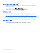 기능 핫키 스피커 사운드를 줄입니다. fn+f11 스피커 사운드를 높입니다. fn+f12 컴퓨터 키보드의 핫키 명령을 사용하려면 다음 단계 중 하나를 따르십시오. ● fn 키를 살짝 누른 후 핫키 명령의 두 번째 키를 살짝 누릅니다. 또는 ● fn 키를 누른 상태에서 핫키 명령의 두 번째 키를 살짝 눌렀다가 두 키를 동시에 놓습니다. 도움말 열기(fn+f1) fn+f1 을 눌러 활성 프로그램의 도움말을 엽니다. 인쇄 옵션 응용프로그램 열기(fn+f2) fn+f2 를 눌러 인쇄 옵션 응용프로그램을 엽니다. 웹 브라우저 열기(fn+f3) fn+f3 키를 눌러 웹 브라우저를 엽니다. 인터넷 또는 네트워크 서비스를 설정하기 전까지 fn+f3 핫키로 인터넷 연결 마법사를 엽니다. 인터넷 또는 네트워크 서비스와 웹 브라우저 홈 페이지를 설정하고 나면 fn+f3 키를 눌러 홈 페이지 및 인터넷에 빠르게 액세스할 수 있습니다.
