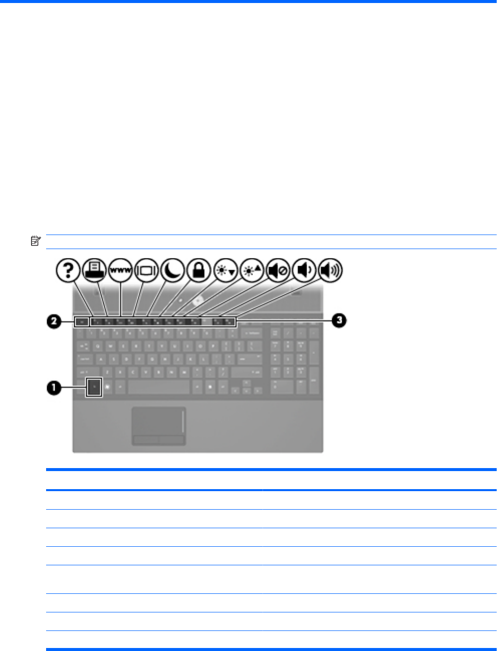 Direktetaster er kombinasjoner av fn-tasten (1) og enten esc-tasten (2) eller en av funksjonstastene