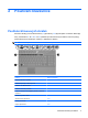 - 1 Použití ukazovacích zařízení Komponenta Popis (1) TouchPad* Slouží k přesunutí ukazatele, výběru nebo aktivaci položek na obrazovce. (2) Levé tlačítko zařízení TouchPad* Používá se stejně jako levé tlačítko externí myši. (3) Oblast posunování zařízení TouchPad Posouvá nahoru a dolů. (4) Pravé tlačítko zařízení TouchPad* Používá se stejně jako pravé tlačítko externí myši. * V této tabulce je popsáno nastavení od výrobce.