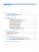 - Spis treści 1 Korzystanie z urządzeń wskazujących Konfigurowanie preferencji urządzenia wskazującego ......................................................................... 1 Korzystanie z płytki dotykowej TouchPad ............................................................................................ 2 Podłączanie myszy zewnętrznej .......................................................................................................... 2 2 Używanie klawiatury Używanie skrótów klawiaturowych ......