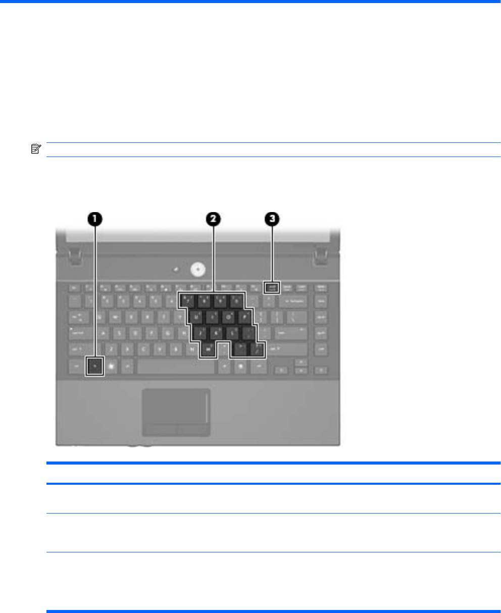 (2) Inbäddade numeriska tangenter Kan användas som tangenterna på ett externt numeriskt