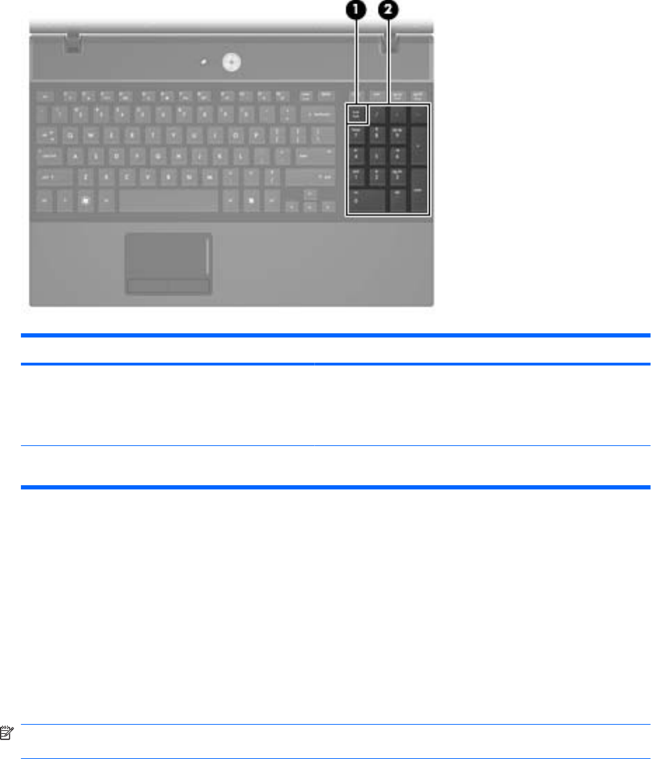 OBS! Det inbäddade numeriska tangentbordet fungerar inte när ett externt tangentbord eller ett