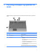 - 1 Placering af knapper og lysdioder for strøm I følgende illustration og skema identificeres og beskrives placeringen af knapper og lysdioder for strøm. Komponent Beskrivelse (1) fn+f5 Starter pausetilstand. (2) Intern skærmknap Slår skærmen fra, hvis skærmen lukkes, mens computeren er tændt. (3) Tænd/sluk-knap ● Når computeren er slukket, skal du trykke på knappen for at tænde den. ● Når computeren er tændt, skal du trykke på knappen for at lukke systemet ned.