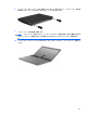 イドさせ(1)、次にキーボードを手前に回転させて(2)キーボード ケーブル コネクタにアクセ