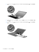 回転軸をそっと押しながらディスクの端を持ち上げて、トレイからディスクを取り出します