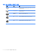- 무선 및 네트워크 아이콘 식별 아이콘 2 이름 설명 무선(연결됨) 컴퓨터의 무선 표시등 및 무선 버튼의 위치를 식별합니다. 또한 컴퓨터 의 Wireless Assistant 소프트웨어를 식별하고 켜져 있는 하나 이상의 무선 장치를 표시합니다. 무선(연결 끊김) 컴퓨터의 Wireless Assistant 소프트웨어를 식별하고 꺼져 있는 모든 무 선 장치를 표시합니다. HP Connection Manager HP Connection Manager 를 열고 HP 모바일 광대역 장치와의 연결을 설정할 수 있습니다(일부 모델만 해당). 네트워크 상태(연결 됨) 하나 이상의 네트워크 드라이버가 설치되어 있고 하나 이상의 네트워 크 장치가 네트워크에 연결되어 있다는 것을 나타냅니다. 네트워크 상태(연결 끊김) 하나 이상의 네트워크 드라이버가 설치되어 있으나 네트워크 장치가 네트워크에 연결되어 있지 않다는 것을 나타냅니다.