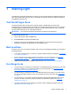 Scrolling Scrolling is useful for moving the pointer up, down, left, or right on a page or image. ● Place two fingers on the screen and then drag them in an up, down, left, or right motion. Pinching/zooming Pinching and zooming allow you to zoom out or in on images or text. ● Zoom out by placing two fingers apart on the screen and then moving your fingers together. ● Zoom in by placing two fingers together on the screen and then moving your fingers apart.