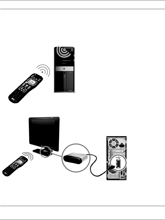 To open Windows Media Center, point the remote control at the remote control sensor on the