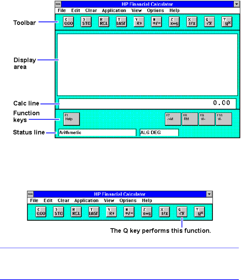 the calculator buttons—for example, pressing the Q key takes the square root of the