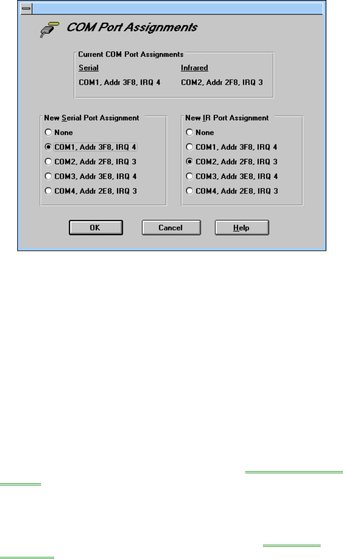 and interrupt for the OmniBook port—for settings, see “To specify serial port