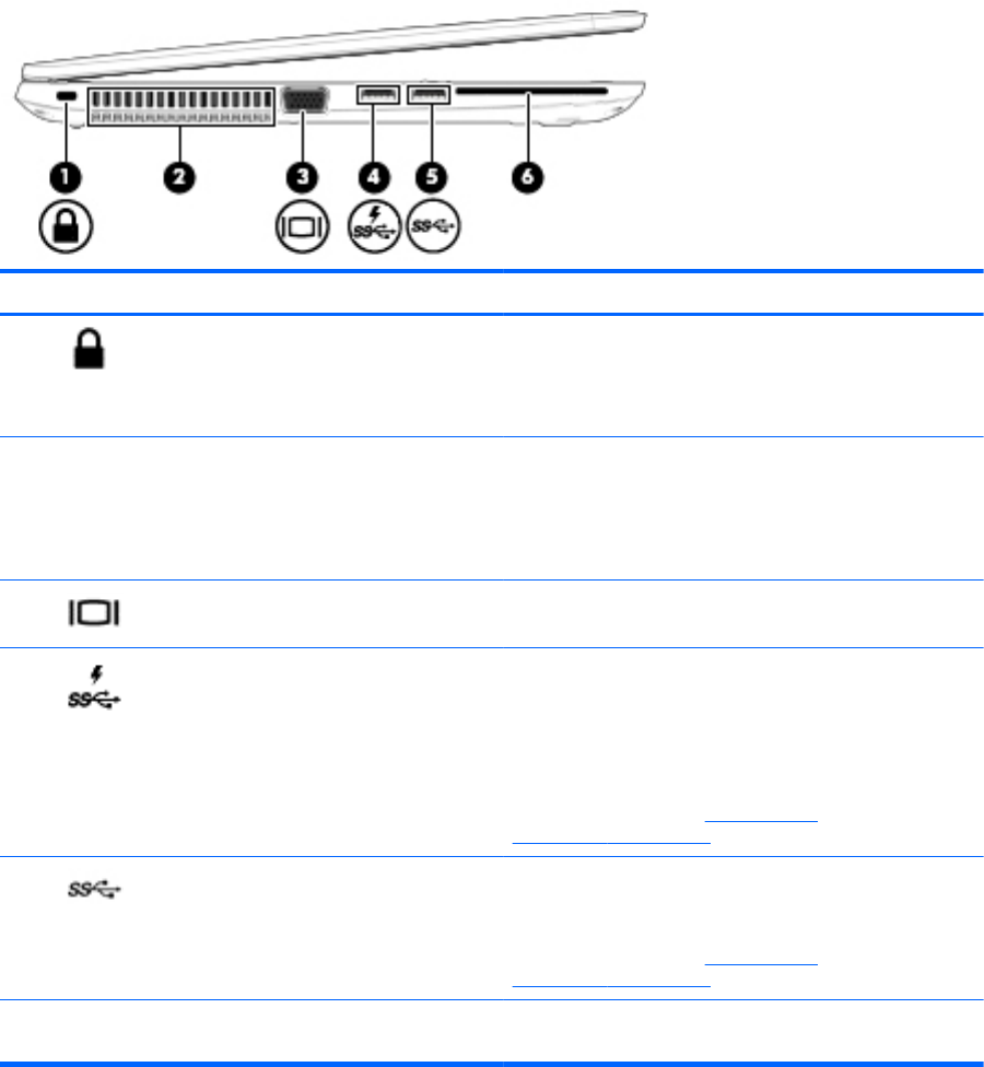 Išorinio VGA monitoriaus prievadas Prijungia išorinį VGA monitorių arba projektorių.