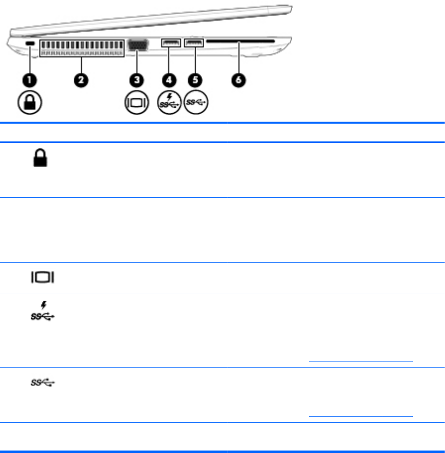 Güvenlik kablosu yuvası İsteğe bağlı güvenlik kablosunu bilgisayara bağlar.