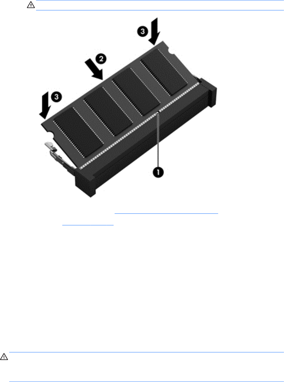 c. Bellek modülünü, sol ve sağ kenarlarına basınç uygulayarak (3) tutma klipsleri yerine