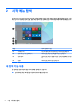 복원 및 복구 시스템 복구에는 몇 가지 옵션이 있습니다. 각자가 처한 상황과 전문 지식을 얼마나 갖추었는지에 따라 가장 적합한 방법을 선택하십시오. 중요: ● Windows는 백업에서 복원, 컴퓨터 새로 고침 및 컴퓨터를 원래 상태로 재설정하기 위한 여러 옵션을 제 공합니다. 자세한 내용은 시작 앱을 참조하십시오. ▲ ● 제품에 따라 이용 가능한 방법은 다릅니다. 시작 버튼을 선택한 다음 시작 앱을 선택합니다. 사전 설치된 응용프로그램이나 드라이버의 문제를 해결해야 하는 경우, HP Recovery Manager의 드라이 버 및/또는 응용프로그램 재설치 옵션(일부 제품만 해당)을 사용하여 개별 응용프로그램 또는 드라이버 를 다시 설치할 수 있습니다. ▲ 작업 표시줄 검색 상자에서 recovery를 입력하고 HP Recovery Manager를 선택한 다음 드라이 버 및/또는 응용프로그램 재설치를 선택하고 화면의 설명을 따릅니다.