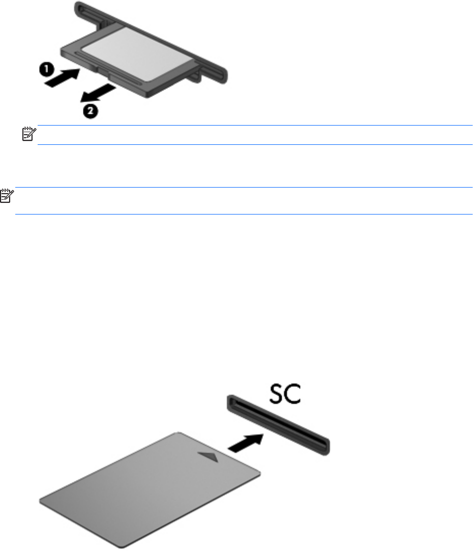 3. Pritisnite karticu (1), a zatim je uklonite iz utora (2).