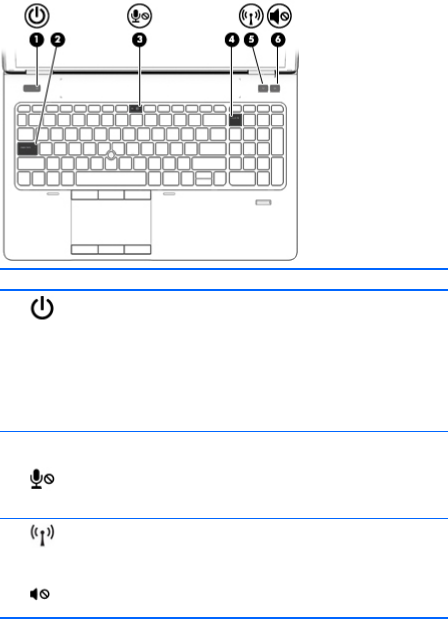 (5) 無線通訊指示燈 亮起:已開啟內建無線裝置,例如無線區域網路