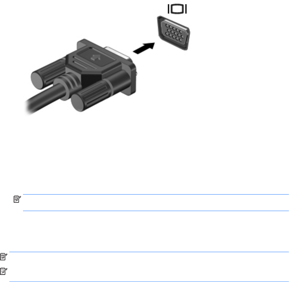 1. 若要連接 VGA 顯示裝置,請將裝置的纜線連接至外接式顯示器連接埠。