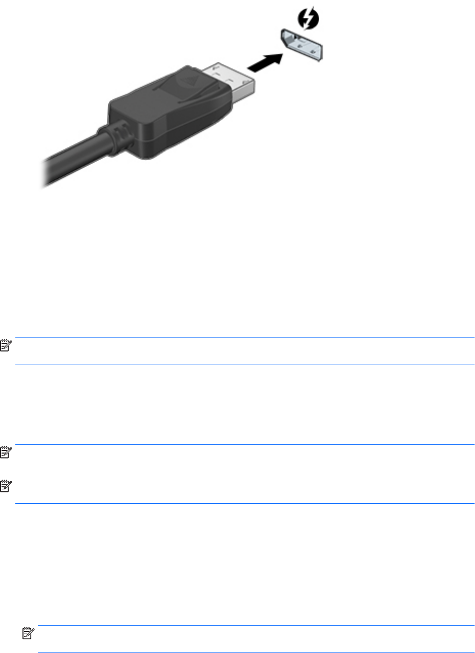 1. 使用 DP-to-DP (DP) 纜線將外接式集線器連接至您電腦的 DisplayPort。DP-to-DP (DP) 纜線與外