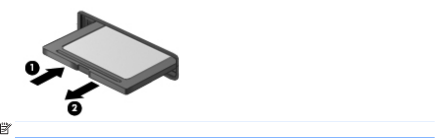 3. 按壓記憶卡 (1),然後從插槽 (2) 將它取出。