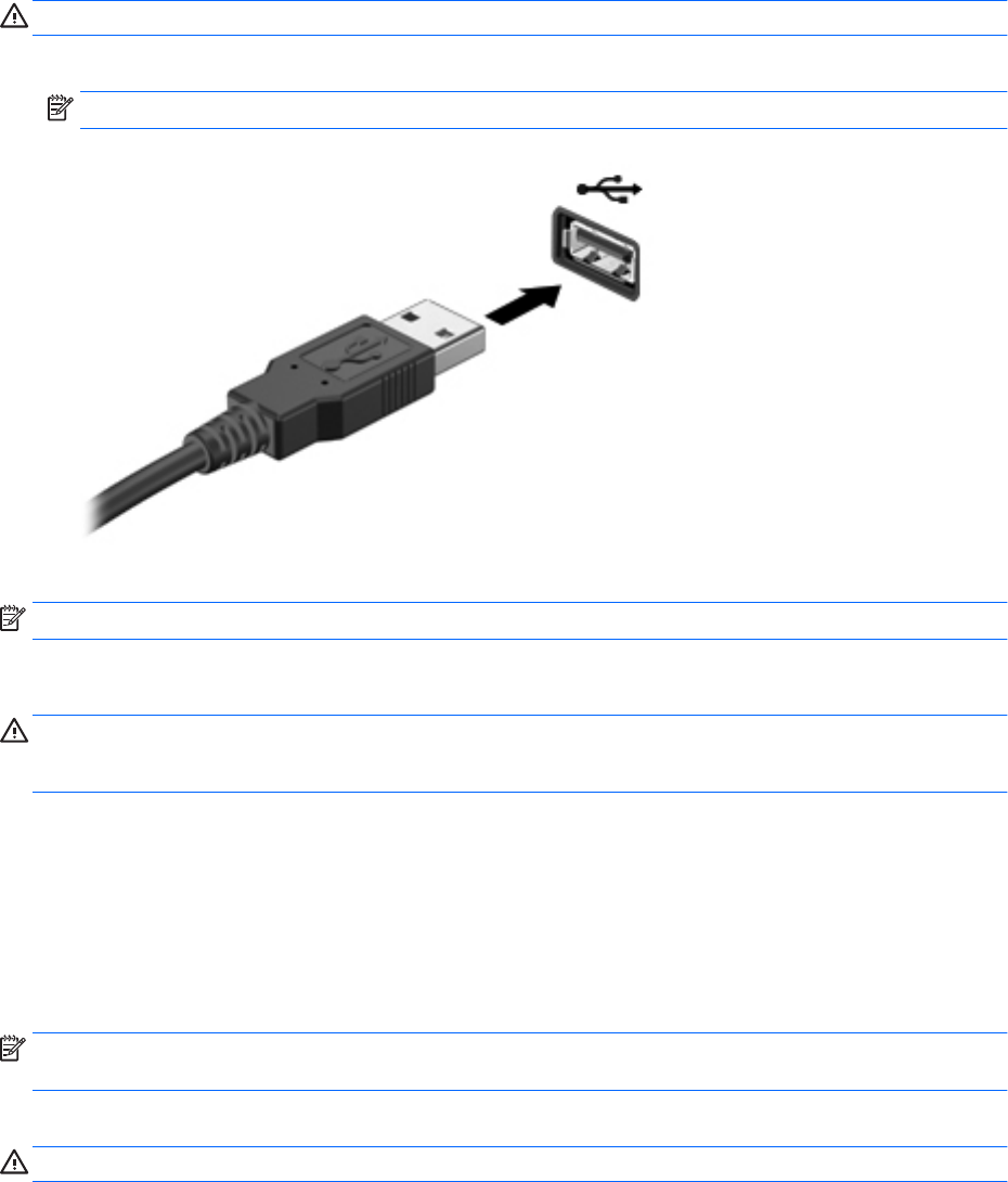 附註:第一次連接 USB 裝置時,通知區域中的訊息會通知您電腦已經識別出該裝置。