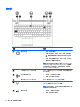 (4) 觸控板區 讀取手指手勢,以移動指標或是啟動螢幕上的項目。