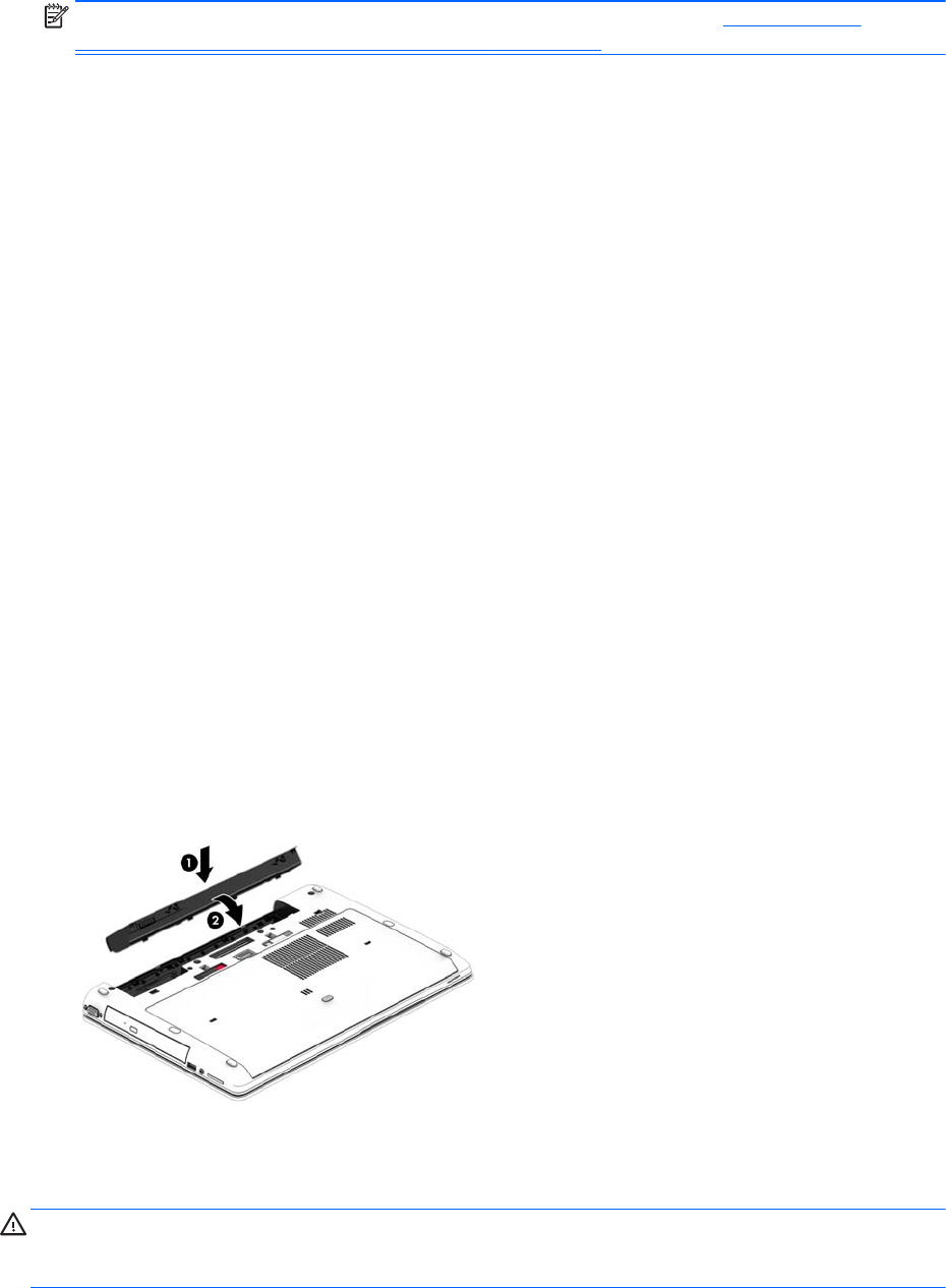an den Einkerbungen am Computer aus. Drücken Sie den Akku nach unten (2), so dass er