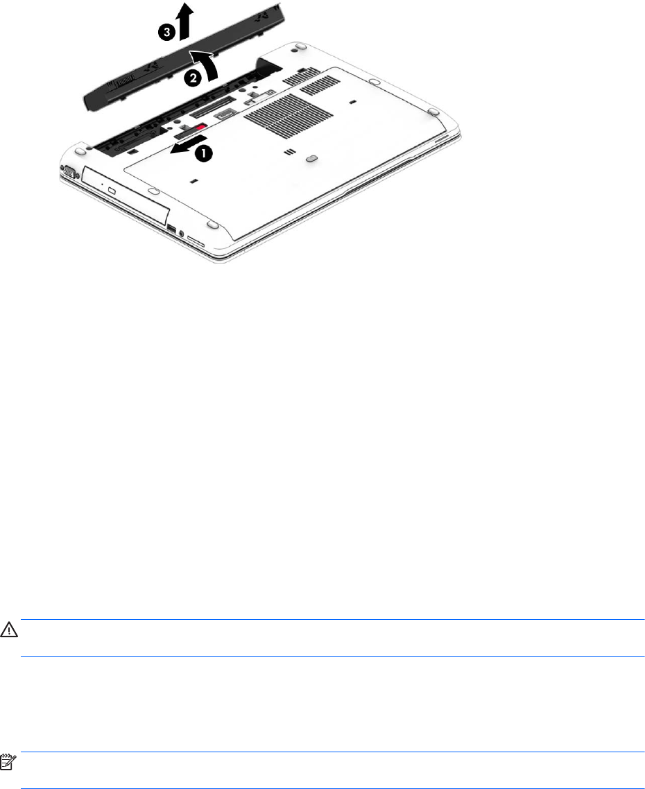 3. Kippen Sie den Akku nach oben (2) und nehmen Sie ihn aus dem Computer heraus (3).