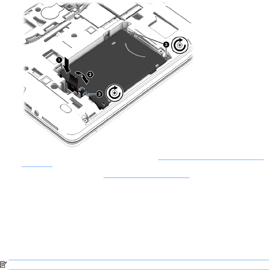 3. Ziehen Sie die Festplattenschrauben an (3).