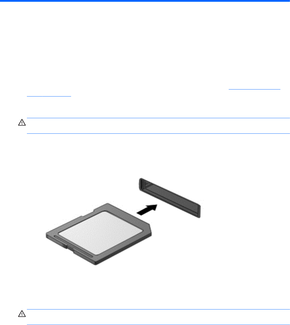 PERHATIAN: Untuk mengurangi risiko kerusakan pada konektor kartu memori, masukkan kartu
