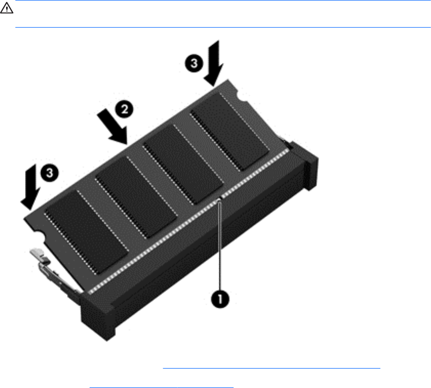c. Pelan-pelan, tekan modul memori ke bawah (3) sambil memberi tekanan di tepi kiri dan tepi