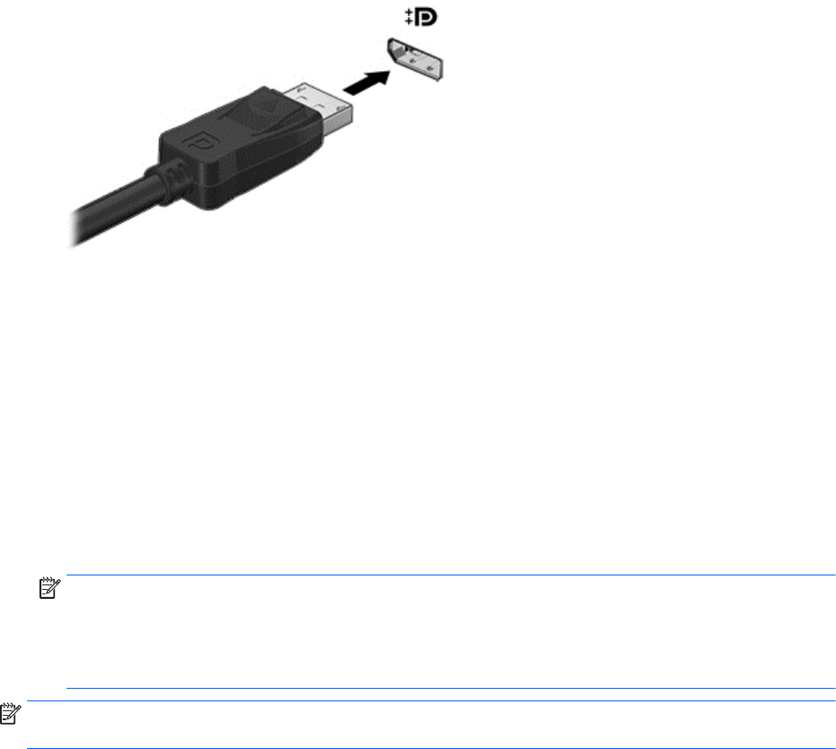 Pripojenie obrazového alebo zvukového zariadenia k portu DisplayPort: