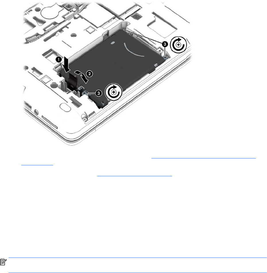 3. Dotiahnite skrutky pevného disku (3).