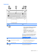 Ліва кнопка сенсорної панелі Виконує функції лівої кнопки зовнішньої миші.