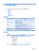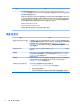 ◦ 생성 과정은 1시간 이상 걸릴 수 있습니다. 생성 과정을 중단하지 마십시오. ◦ 필요에 따라 복구 DVD 생성을 모두 완료하기 전에 프로그램을 종료할 수도 있습니다. HP Recovery Manager가 현재 진행 중인 DVD 굽기 작업을 완료합니다. 다음 번에 HP Recovery Manager를 열 때 프로세스를 계속할지 묻는 메시지가 표시됩니다. HP 복구 미디어를 만들려면 다음과 같이 하십시오. 1. 작업 표시줄 검색 상자에 복구를 입력한 다음 HP Recovery Manager를 선택합니다. 2. 메시지가 나타나면 예를 클릭하여 프로그램이 계속 진행할 수 있게 합니다. 3. 드라이버 및 소프트웨어를 선택한 다음 화면의 설명을 따르십시오. 시스템을 복구해야 하는 경우 28페이지의 HP Recovery Manager를 사용하여 복구 섹션을 참조하십시오.