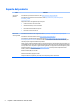 Documentación del producto Tema Ubicación Documentación para el usuario de HP y de otros proveedores y libros blancos La documentación del usuario se encuentra en su unidad de disco duro. En Windows 7, seleccione Inicio, seleccione HP y luego seleccione Documentación de HP. En Windows 10, escriba Documentación de HP en la casilla de búsqueda de la barra de tareas. Para obtener la documentación más reciente en línea, vaya a http://www.hp.com/support/ workstation_manuals.