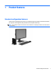 1 Product features Standard configuration features Features may vary depending on the model. For a complete listing of the hardware and software installed in the computer, run the diagnostic utility (included on some computer models only). NOTE: This computer model can be used in a tower orientation or a desktop orientation. The tower stand is sold separately.