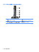 リア パネルの各部(ProDesk 600) 6 1 DisplayPort モニター コネクタ(×2) 5 USB 3.0 ポート(青色) 2 VGA モニター コネクタ 6 RJ-45 ネットワーク コネクタ 3 ラインアウト オーディオ コネクタ 電源 7 供給機能付きオーディオ機器用(緑色) 4 USB 2.